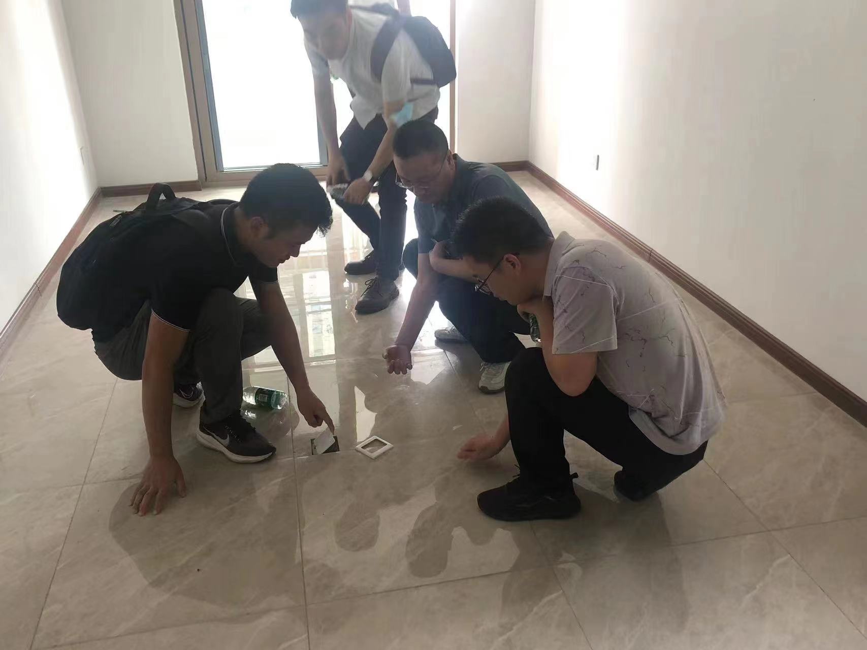 7月21日,一行嘉賓蒞臨孚達公司保溫隔聲裝飾樓地面一體磚項目現場進行實地調研,了解該產品實際應用效果,對該產品應用表示充分認可。