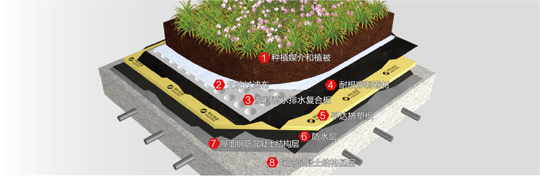 種植屋面具有一般倒置式屋面所有優點,增加了綠化面積,建造自然舒適的居住環境,減少并延緩城市暴雨形成的徑流排放,減少城市熱島效應,并進一步實現建筑節能凈化空氣,改善空氣質量。