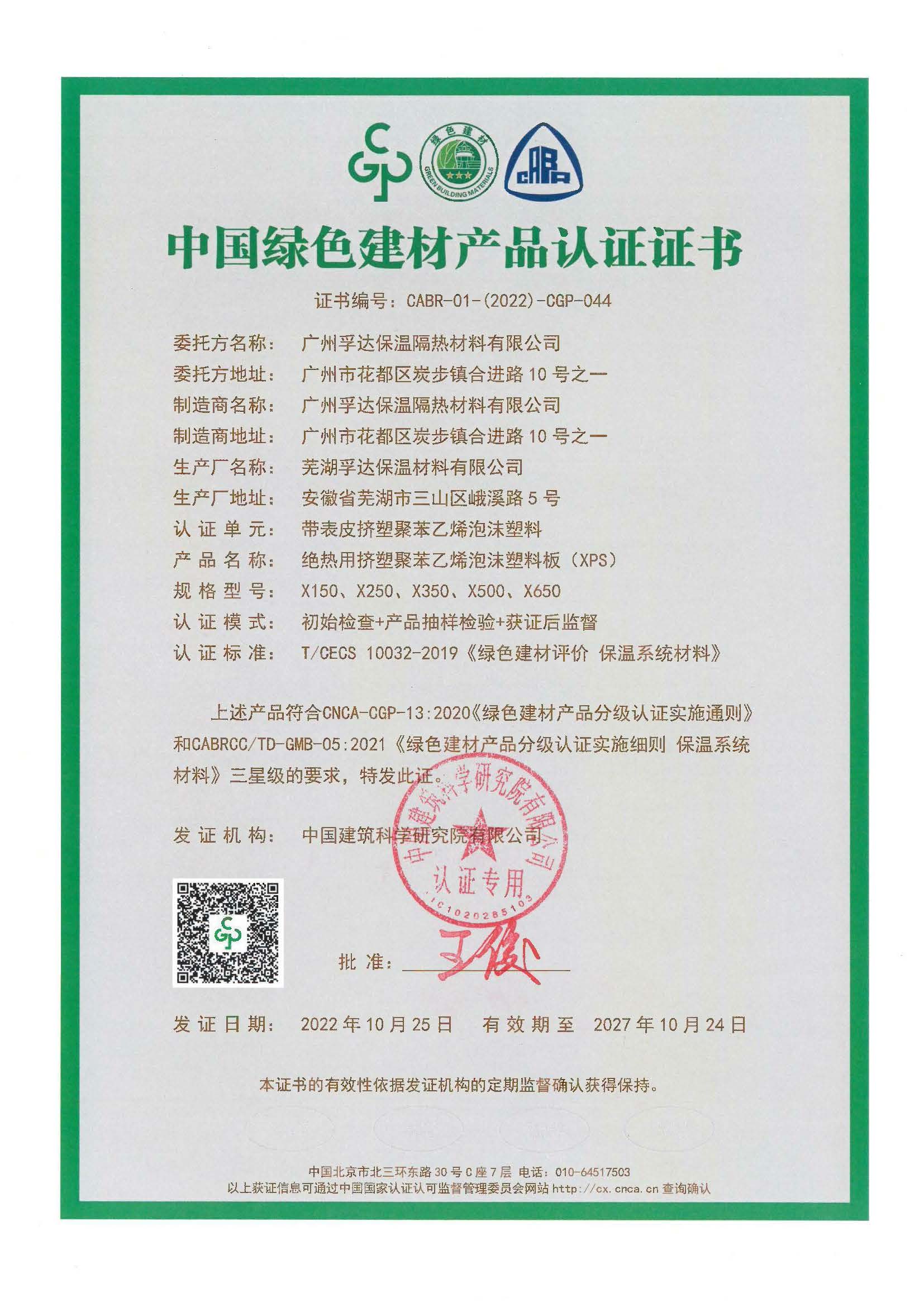 孚達公司深耕建筑節能保溫領域十余年,始終堅守節能環保理念,并獲得社會各界一致認可。2016-2020年連續五年被國家輕工業部評為行業十強單位、2017年獲得聯合國授予的為保護臭氧層做出寶貴貢獻和努力的《認可榮譽證書》、2021年獲保溫行業首家中國綠色建材產品認證證書、2021年獲全球環境基金“提高泡沫行業環境績效:中國六溴環十二烷(HBCD)淘汰與管理項目”之XPS板材企業示范項目等。面對國家綠色可持續發展理念,保護臭氧層工作和禁用HBCD使得綠色環保建筑前進了一大步,孚達公司站在建筑建材行業未來發展的戰略高度,把可持續發展融入企業發展和生產運營中,原材料使用環保型阻燃劑,強化綠色創新發展,助推行業高質量發展。